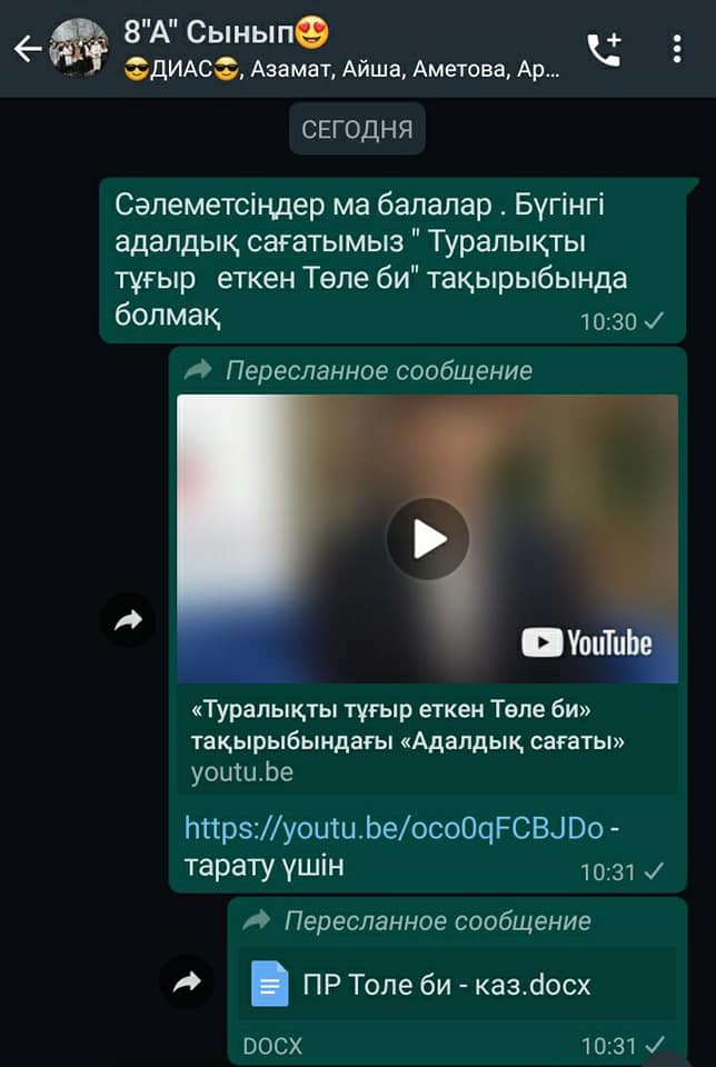 #35 орта мектебі бойынша кезекті АДАЛДЫҚ САҒАТЫ: «ТУРАЛЫҚТЫ