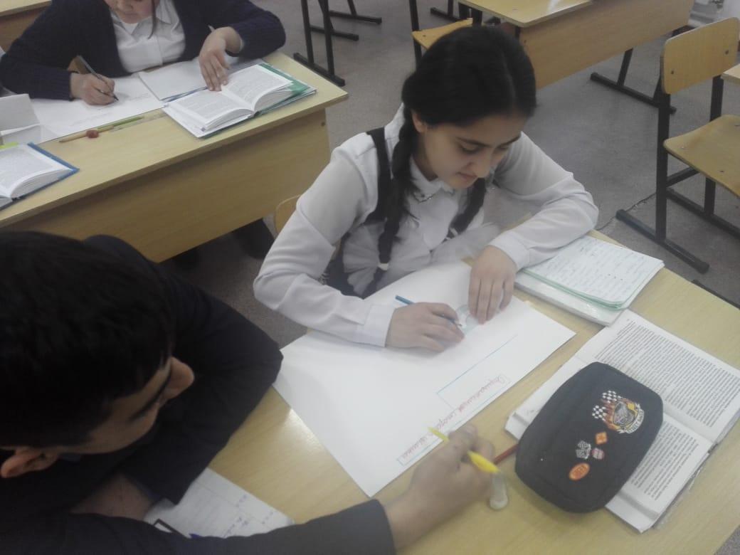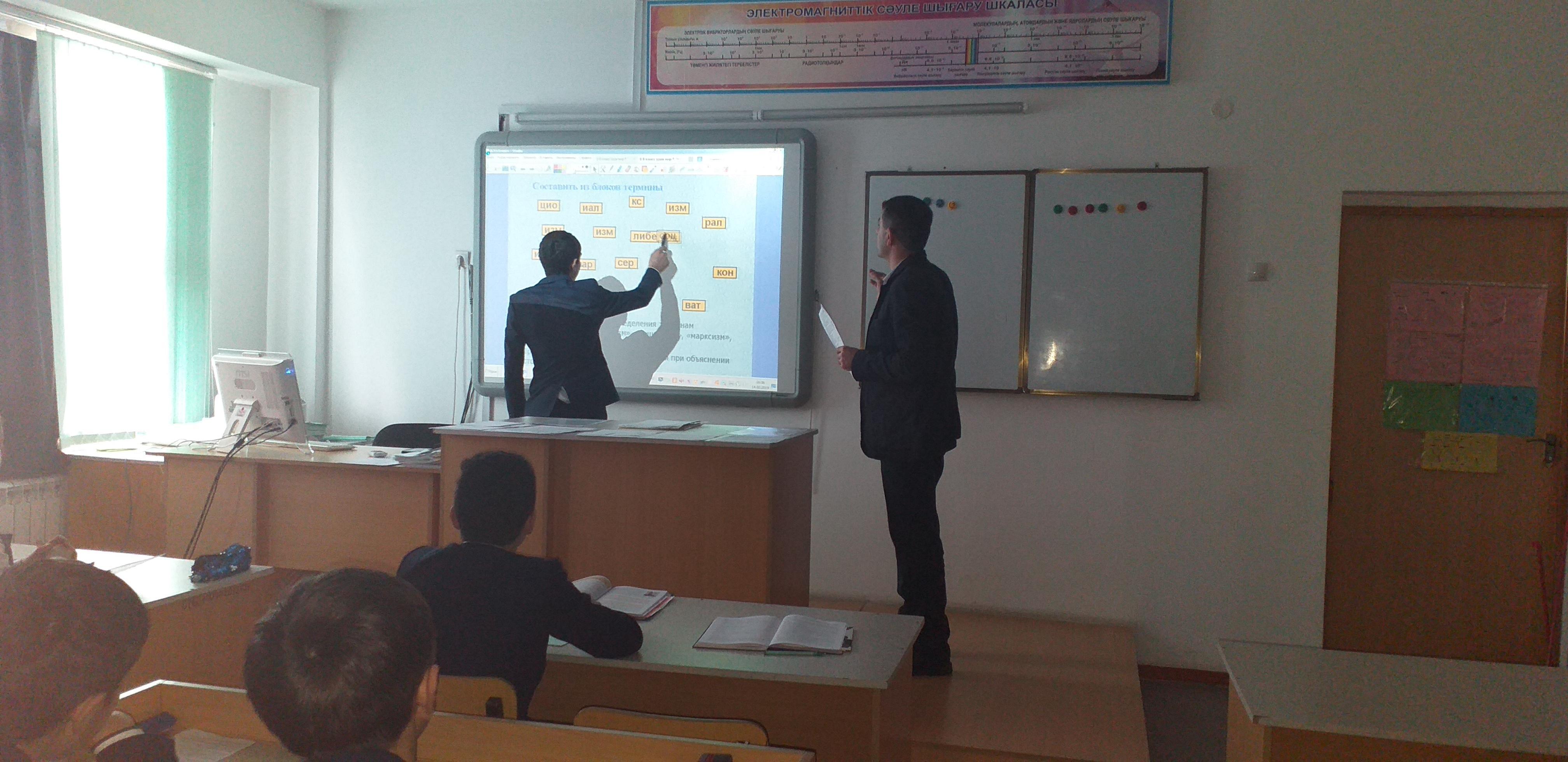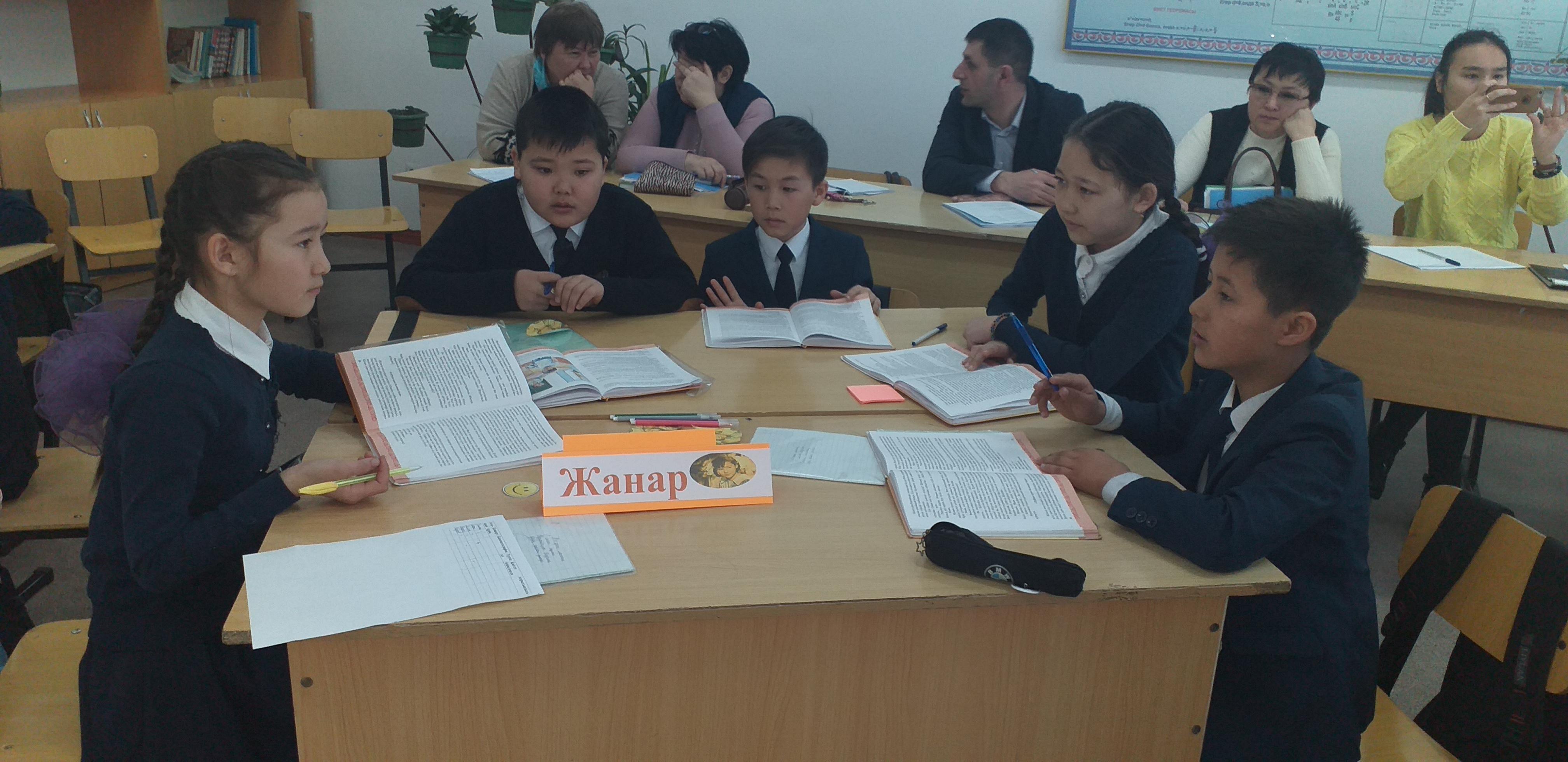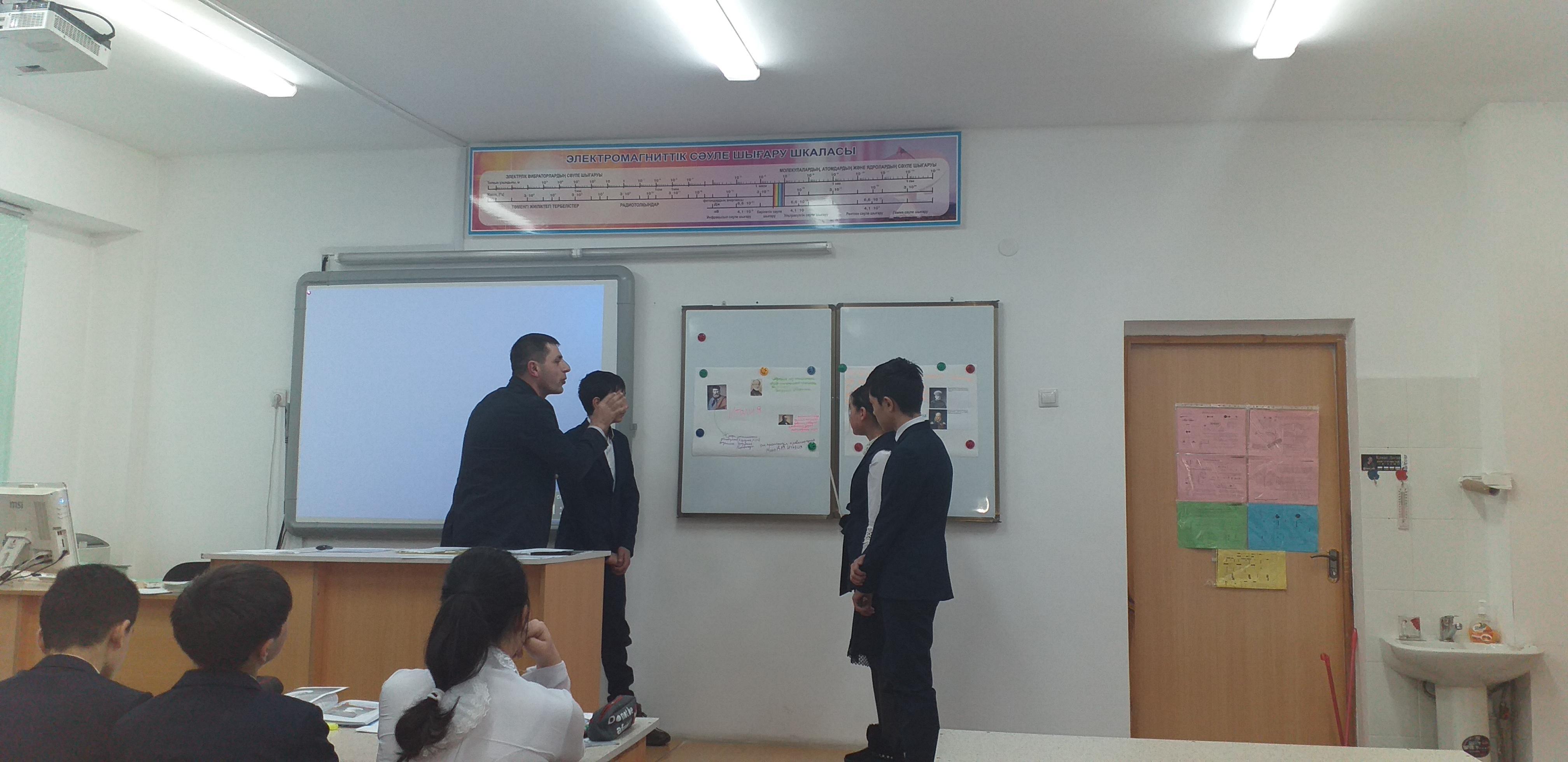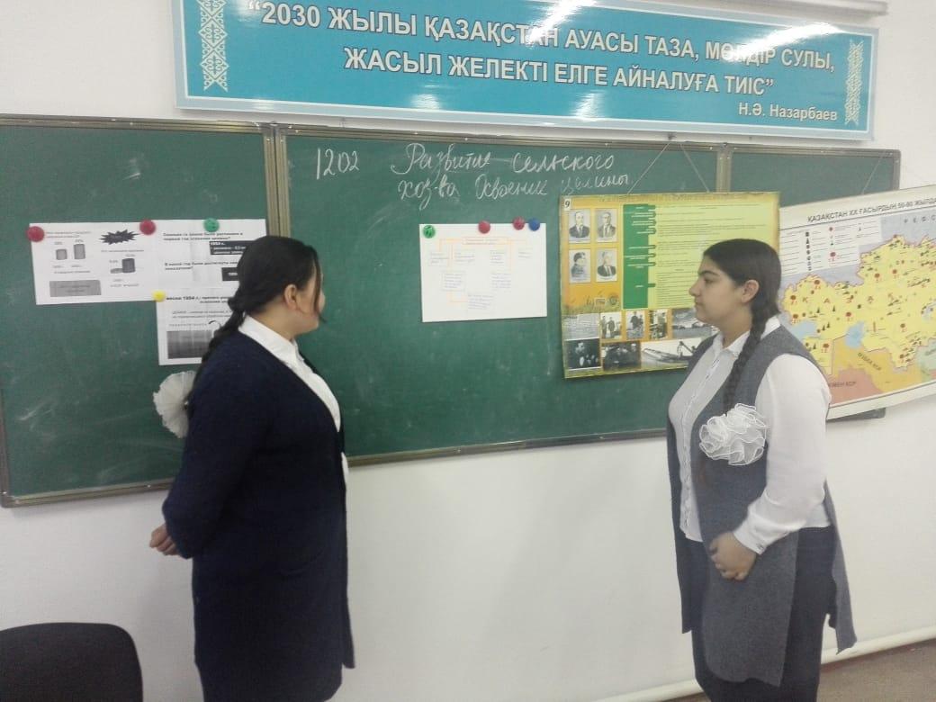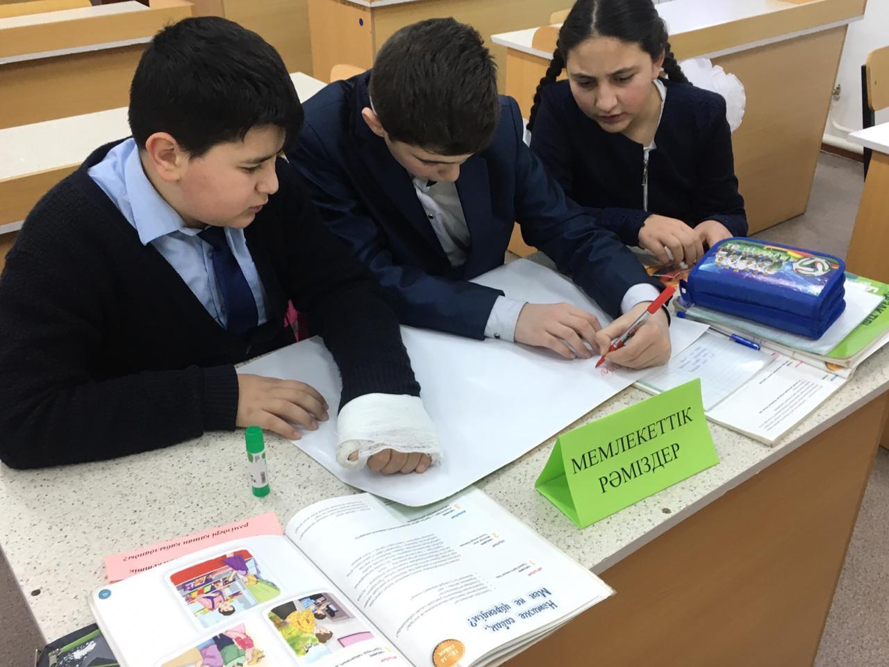 1.Н. Рахмитуллаева 5б орыс сыныбында қазақ тілі мен әдебиеті пәнінен «Нәтиже сабақ. Мен не үйрендім?» тақырыбында ашық сабақ көрсетті. Мұғалім сабақты жаңартылған бағдарлама бойынша өтті. Сыныпта 6 оқушы, Соловьев Владимир ауырып қалу себебімен сабаққа қатыспады. Мұғалім сабақта тақырыпқа байланысты көрнекілік құралдар мен дидактикалық материалдарды тиімді пайдалана білді. Сабақта «Шаттық шеңбер» стратегиясы арқылы психологиялық ахуал қалыптастырды. Мемлеккеттік рәміздер мен ұлттық валюта суреттер арқылы топқа бөлді. Сабақты «Миға шабуыл», «Суреттер сөйлейді», «Ыстық орындық» әдістерін тиімді пайдалана білді. Қазақ тілінде төл дыбыстарды еркін айтады. Аталған әдістер арқылы жеке, жұпта, топта тапсырмалар орындалды. Әр тапсырмадан соң қалыптастырушы бағалау үдерісі жүріп отырды. Оқушылар сабаққа белсене қатысты.