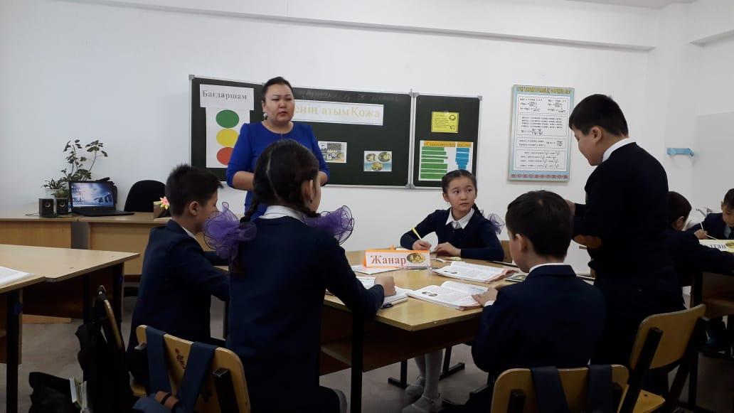 2.Ж.М. Кудабаева қазақ тілі пәнінен 5а сыныбында «Менің атым - Қожа» тақырыбында ашық сабақ көрсетті. Сынып тақырыпқа сай материалдармен безендірілген. Сабаққа балалар белсене қатысып отырды. Мұғалім сабаққа жақсы дайындалған. Сабақта «Шаттық шеңбері», «Жеке, тұптық, топтық жұмыстар», «Қол шапалақтау», «Мадақтау» әдістерін тиімді пайдалана білді. Өзін-өзі бағалау парақшаларын, үлестірмелі карточкалар, суреттерді қолданды. Бейнежазба, аудиожазба материалдарын пайдаланды. Әр тапсырмадан соң қалыптастырушы бағалау үдерісі жүріп отырды. Жаңартылған бағдарлама бойынша әртүрлі әдіс – тәсілдерді тиімді пайдаланды. Оқушылар сабаққа белсене қатысып отырды.