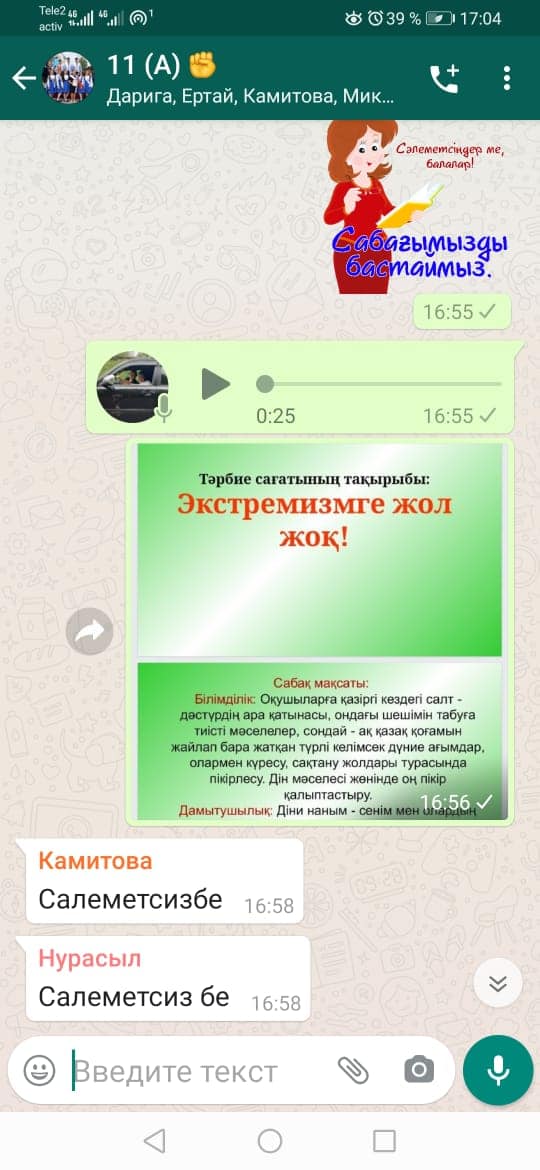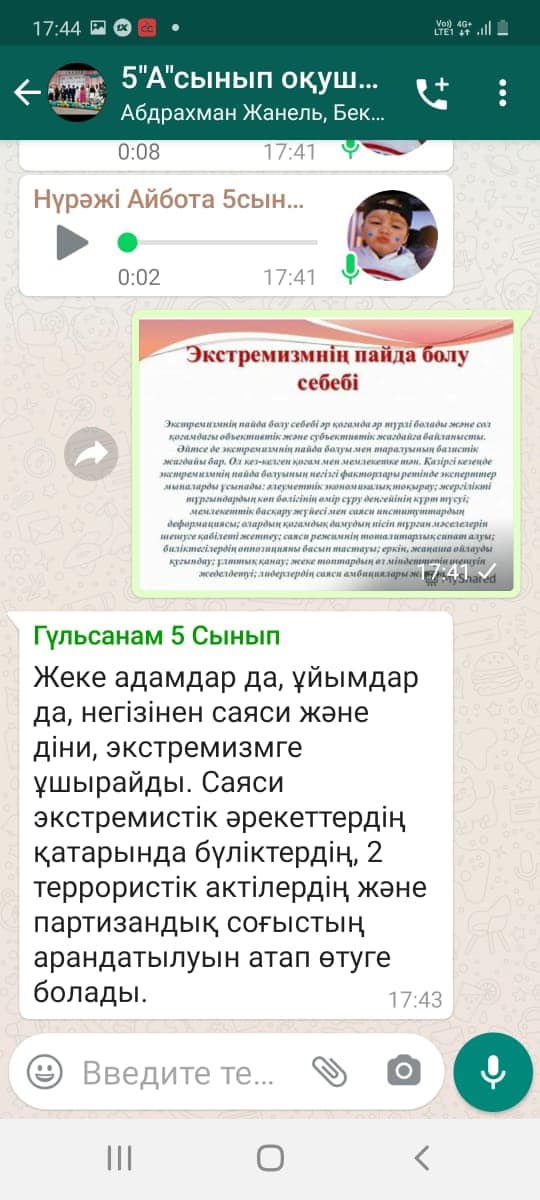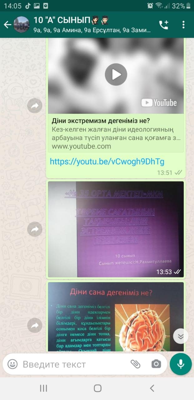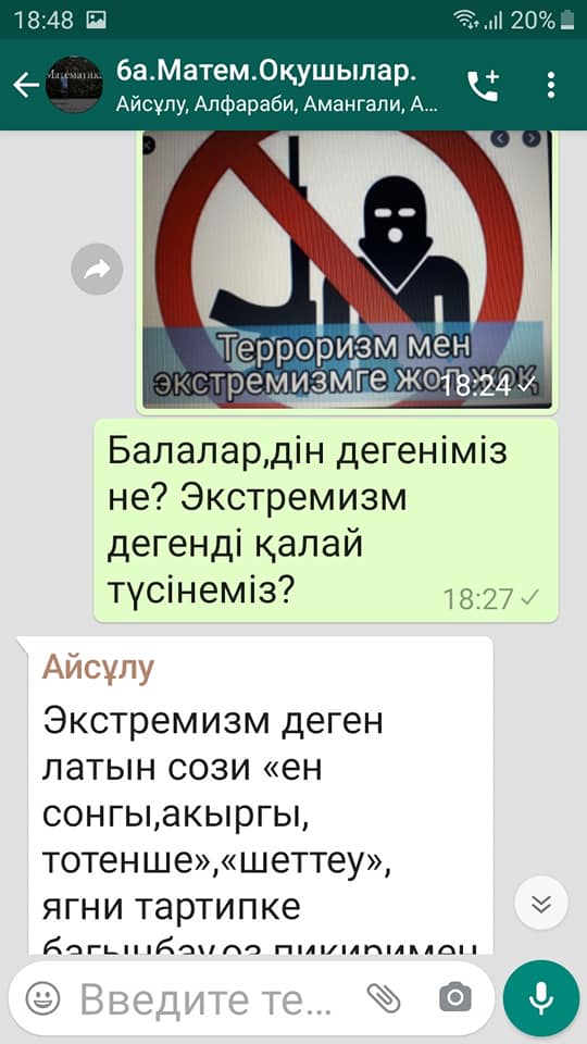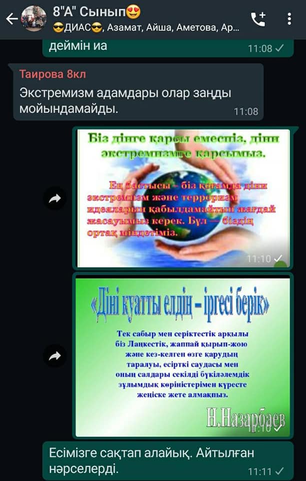 25 январь 2021 0 1 2 3 4 5 "Діни экстремизмге жол бермеу басты міндет" Алматы облысы, Іле ауданы, Жаңаарна ауылы #35 орта мектеп бойынша 14-24.01.2021 жылы "Діни экстремизмге жол бермеу басты міндет" онкүндігі аясында өткізілген іс-шаралардың көрінісі.