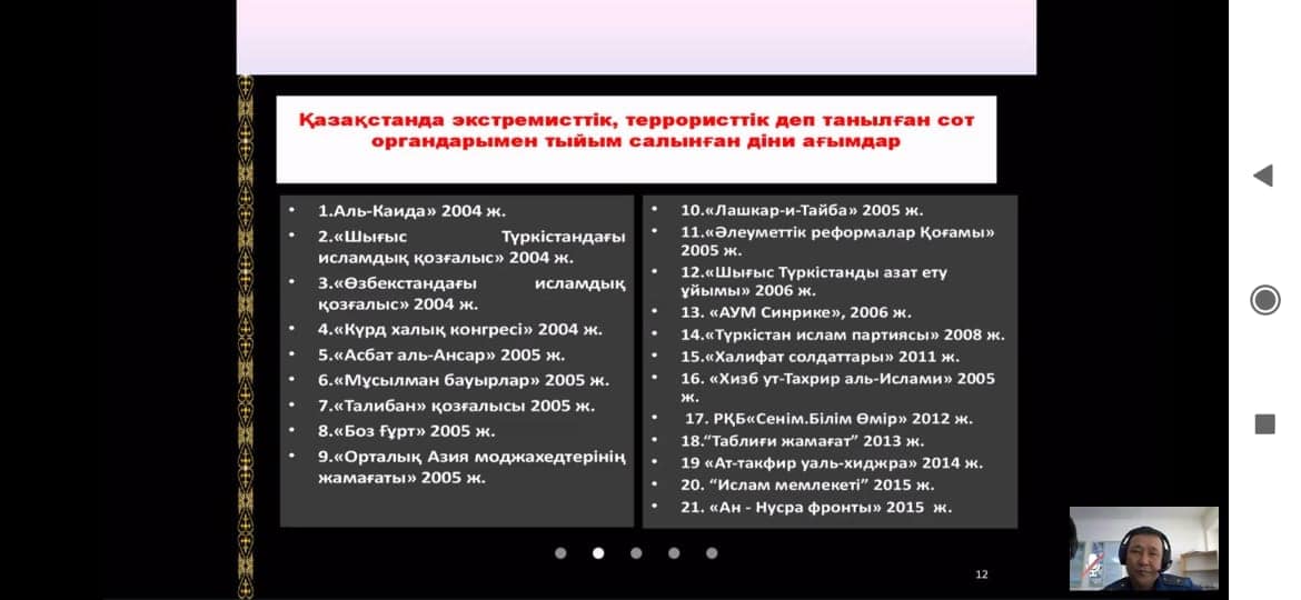 Алматы облысы, Іле ауданы, Жаңаарна ауылы #35 орта мектеп бойынша 14-24.01.2021 жылы "Діни экстремизмге жол бермеу басты міндет" онкүндігі аясында А.Тойлыбаева мен Қ.Торебековтың ұйымдастыруымен мұғалімдерге дәріс оқылды.