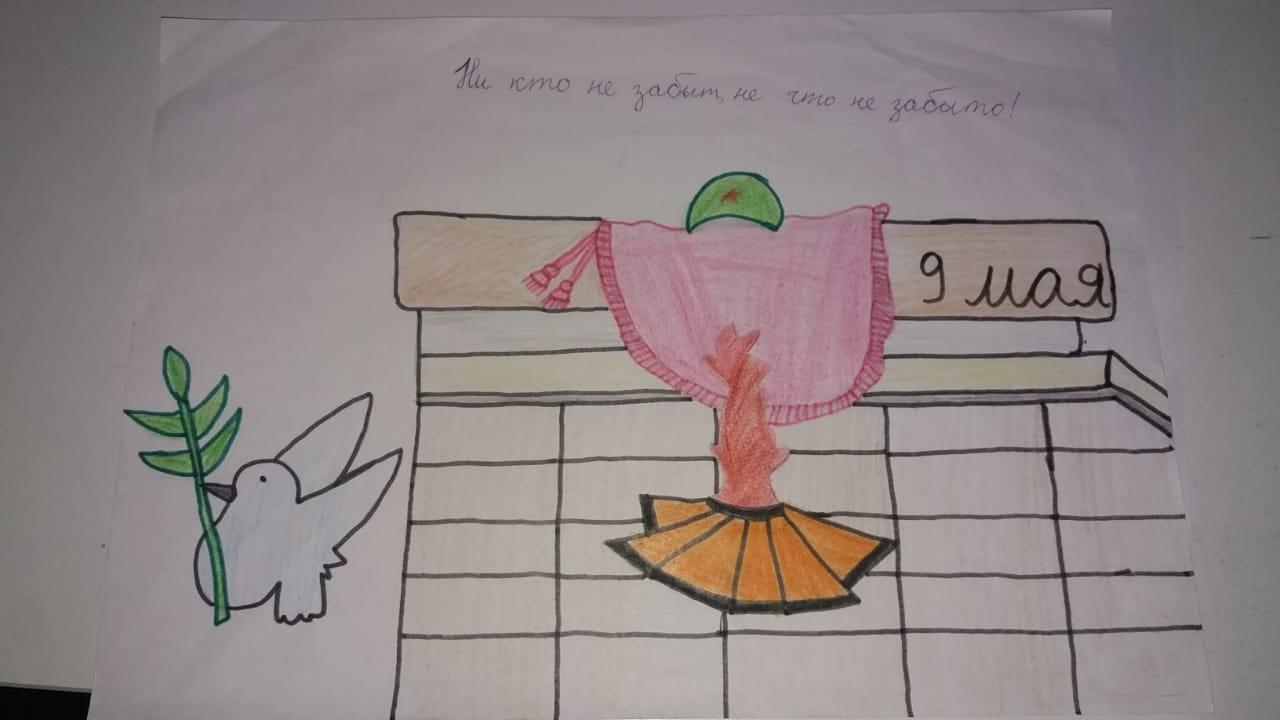 Алматы облысы, Іле ауданы, Жаңаарна ауылы №35 орта мектебі "Ұлы Жеңістің 76-жылдығына" орай  «Еңсесі биік – Ұлы Жеңіс» тақырыбында сурет көрмесі ұйымдастырылды.