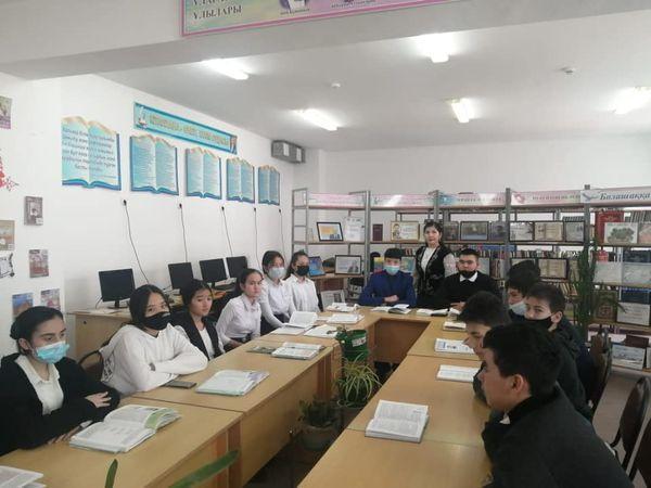 Жаңаарна ауылындағы # 35 орта мектебінің қазақ тілі мен әдебиеті пәнінің мұғалімі Смайлова Миргул және кітапхана меңгерушісі Аймамбетова Дарига "Оқуға құштар мектеп" жобасы аясында 6, 8, 9 қазақ сынып оқушыларымен кездесу өткізді. Бұл шараның мақсаты - оқшылардың оқу сауаттылығын арттырып, жас ұрпақ бойында жоғары азаматтық және рухани адамгершілік құндылықтарды қалыптастыру, мәдени және оқу құзіреттілігін дамыту, сынып болып оқыған кітаптарымен бөлісу. Жас ұрпақтың оскелең талабын қанағаттандыруда, рухани байлығын, ой-өрісін дамытуда, жоғары эстетикалық талап-талғамын қалыптастыруда ең улкен де ұлы тәрбие құралы - кітап екенін түсіндіру